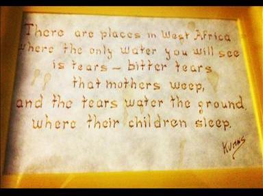 “There are places in West Africa where the only water you will see is tears – bitter tears that mothers weep, and the tears water the ground where their children sleep”