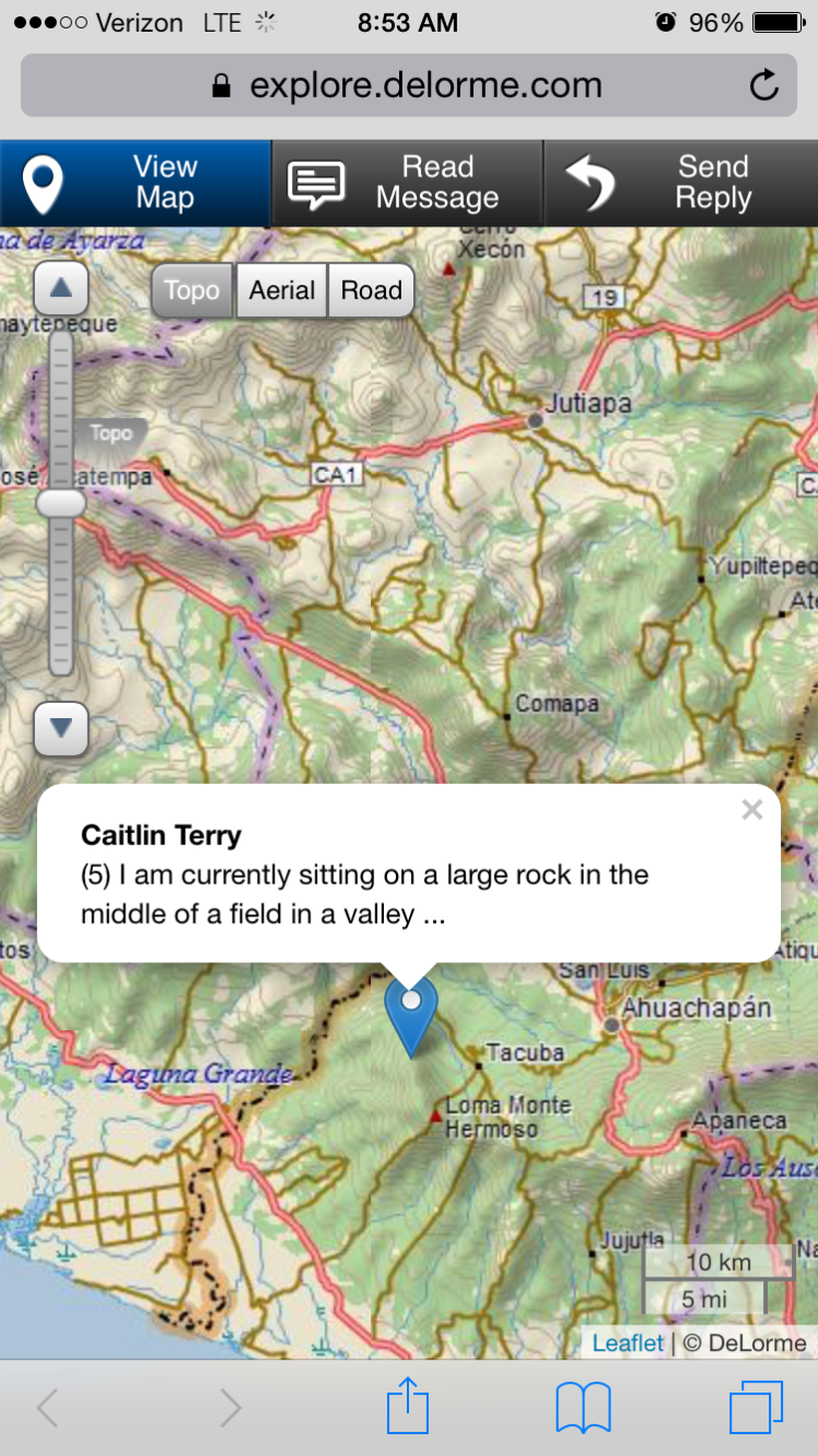 am currently sitting on a large rock in the middle of a field in a valley between the mountains. My satellite messengers gets good reception here 🙂