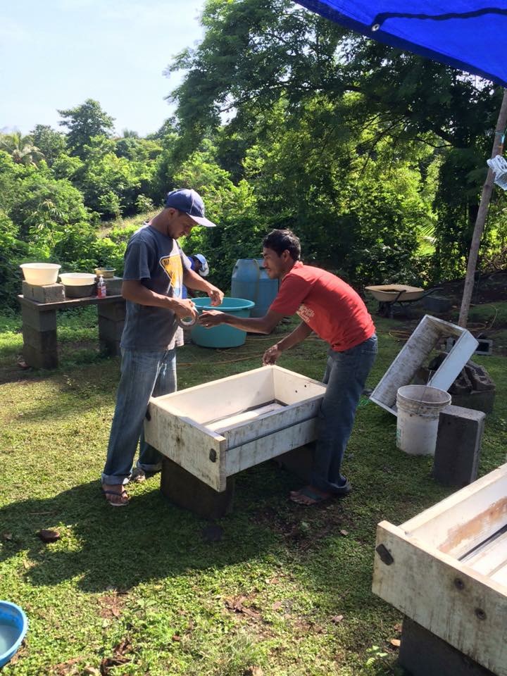 The water filters are built alongside locally trained water technicians. The biosand filters are built with members of the family who will be receiving the stoves.