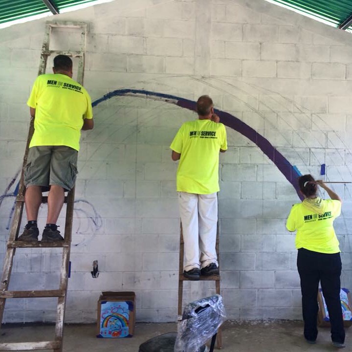Deborah, our artist, sketched out and designed the mural and other volunteers painted with her (a total of 20 hours) to create a bright and beautiful room for the preschoolers.