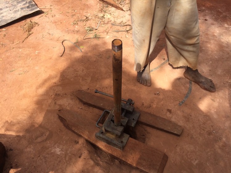 Drilling continues here at the primary school in Kyansinbi. It started great, but within a few days we ran into challenges with a quartz-like rock in the borehole. We spent 7 hours one day just to chip enough to move pass briefly. Even after we chip off chunks of the rock, it feels like it moves enough to drill a little deeper and then falls into a position where it locks up the drill again. We are continuing to work hard and hopefully will reach water!